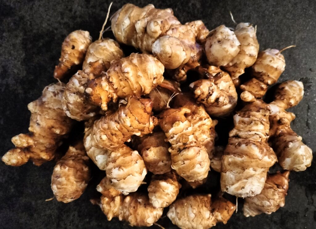 A fine harvest of Jerusalem artichokes, and what I didn’t find will be a gift to the next tenders of my garden (whether they like it or not!)